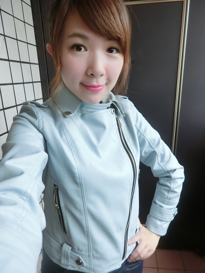 <淘寶挖好物>春天必買必敗甜美帥氣兼具的淺藍色短版皮衣外套~皮衣很軟好好穿