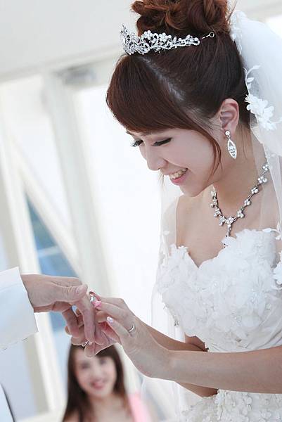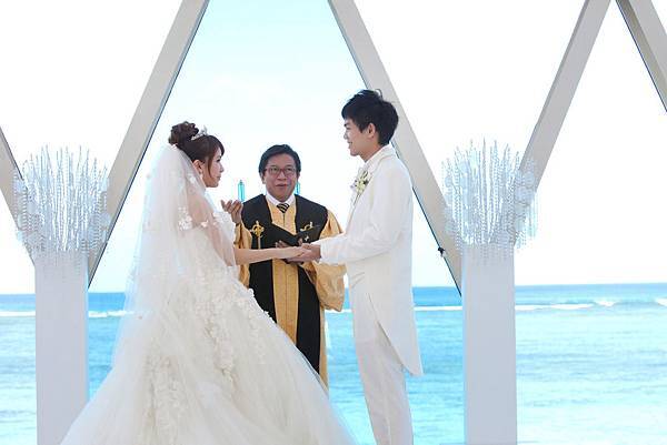 緩緩走到牧師前,先是一陣的祝福,接著交換誓詞