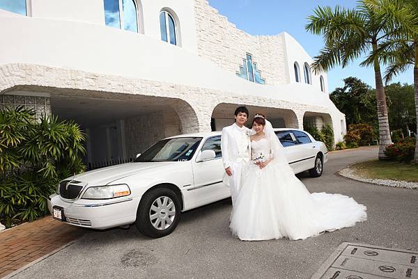 前往教堂的路上是由加長型的豪華禮車所接送,