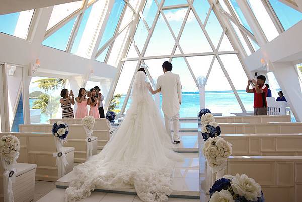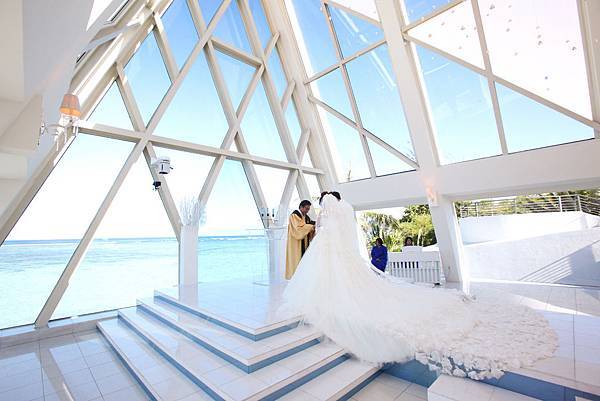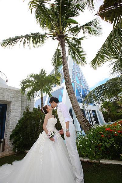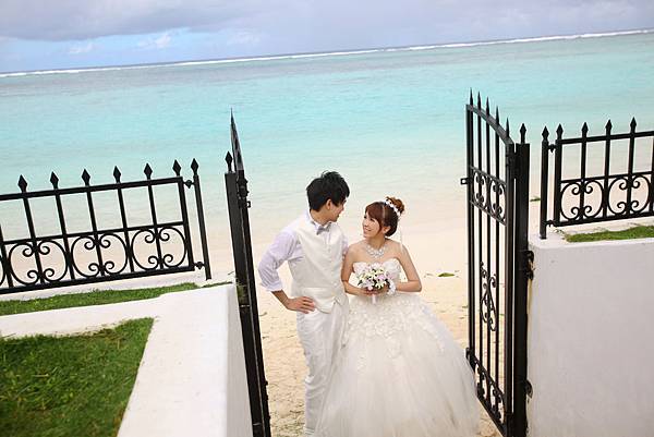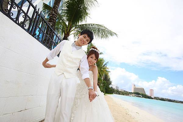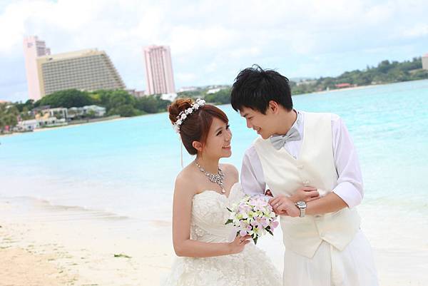 教堂內的儀式結束後會移師到關島極美的白沙灘杜夢灣再拍照,