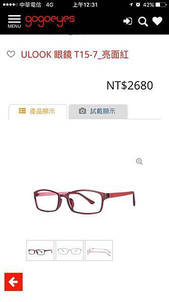 眼鏡配色繽紛豐富,我選了搶眼的紅色款來試戴,