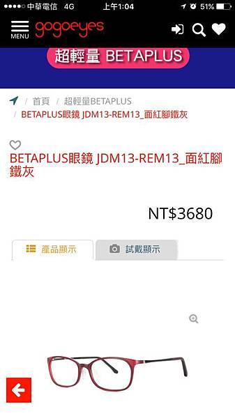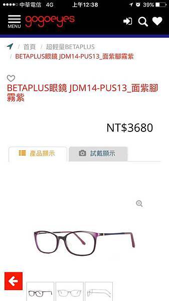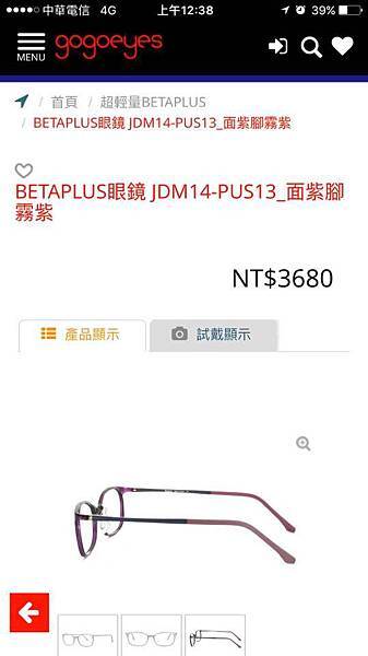 因為對輕量款眼鏡很感興趣,又挑了一款來試戴