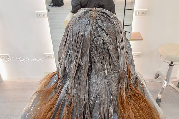 再來由設計師親自上染膏,過程相當順利沒有拉扯感,也沒有頭皮不舒適的感覺,